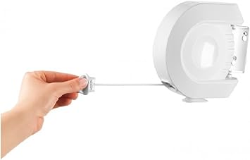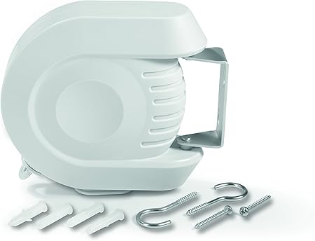 Relaxdays wäscheleine ausziehbar mit automatischem rollsystem und aufrollautomatik für den balkon oder garten mit 1 leine und einer gesamten trockenlänge von 12 m aus kunststoff mit metallarm weiß.